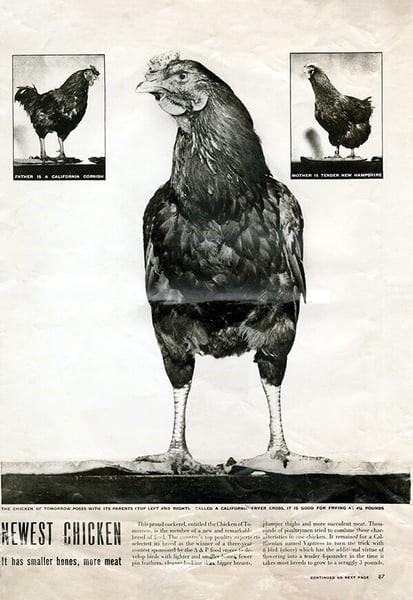 全美42个州的养殖户响应号召,将1万枚受精鸡蛋送往马里兰州实验室(该孵化场距离Dixon总部仅 40 分钟车程哦~)。在恒温37.8℃的精密控制下,加州农场主查尔斯·范特雷斯(Charles Vantress)凭借“加州康尼什鸡×新罕布什尔鸡”的杂交品种夺冠。其培育的肉鸡体重达1.8公斤,是当时标准肉鸡(0.9公斤)的两倍,鸡胸厚度增加127%。